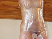 Dieses heisse Biest ist in Plastikfolie eingewickelt ihr Stecher nutzt die Gelegenheit und leckt ihr die feuchte Vagina das gefällt der Hure ganz gut und sie fängt an laut zu stöhnenÂ…