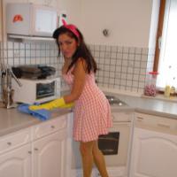 In ihrem kurzen karierten Kleid, putzt sie die Küche und gönnt sich zwischendurch eine Banana, die sie leider vorerst nur in den Mund steckt. mehr Bilder >>